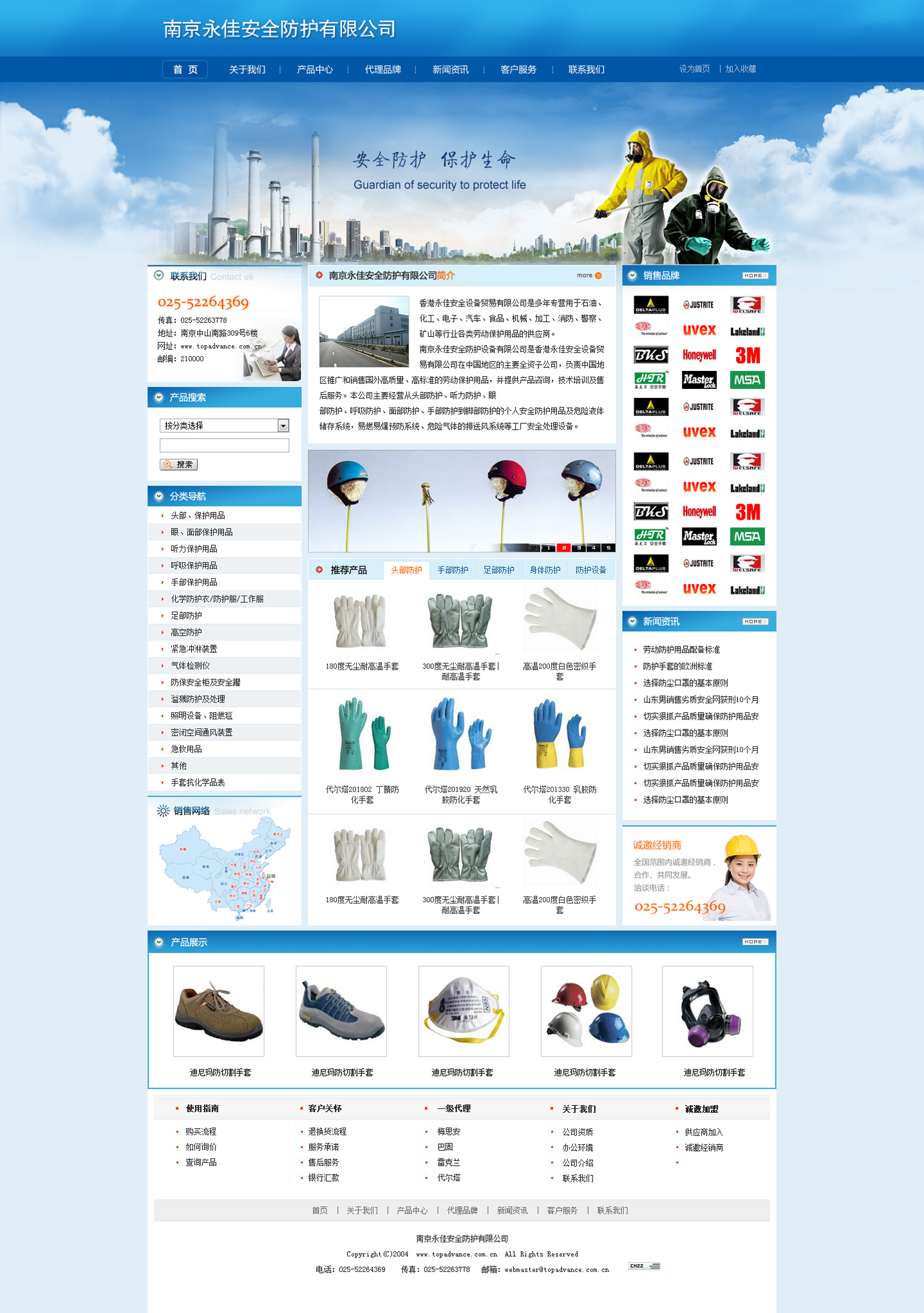 南京永佳公司主要經營:頭部防護,聽力防護,眼部防護,呼吸防護, 軀體防護,手部防護到腳部防護的個人安全防護用品及危險液體儲存系統,易燃易爆品預防系統,危險氣體的檢測和工廠環境安全儀器設備。并提供產品咨詢,技術培訓及售后服務。